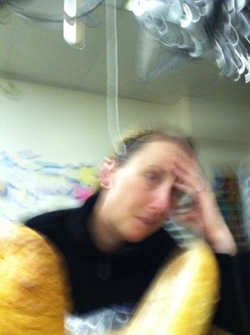 -bake 25 loaves of bread for sandwich shop while kids are at catering kitchen going nuts (see above photo taken by my son)