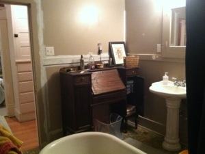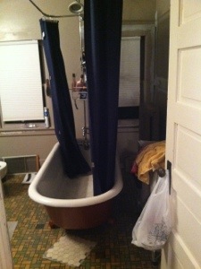 Now we’re back and still have no bathroom because the tub needs to be refinished and etc. Today is day 3 of no shower. Gross. I’m headed to the Y to get the sweat and sawdust out of my pores. Yuck. Itchy.
