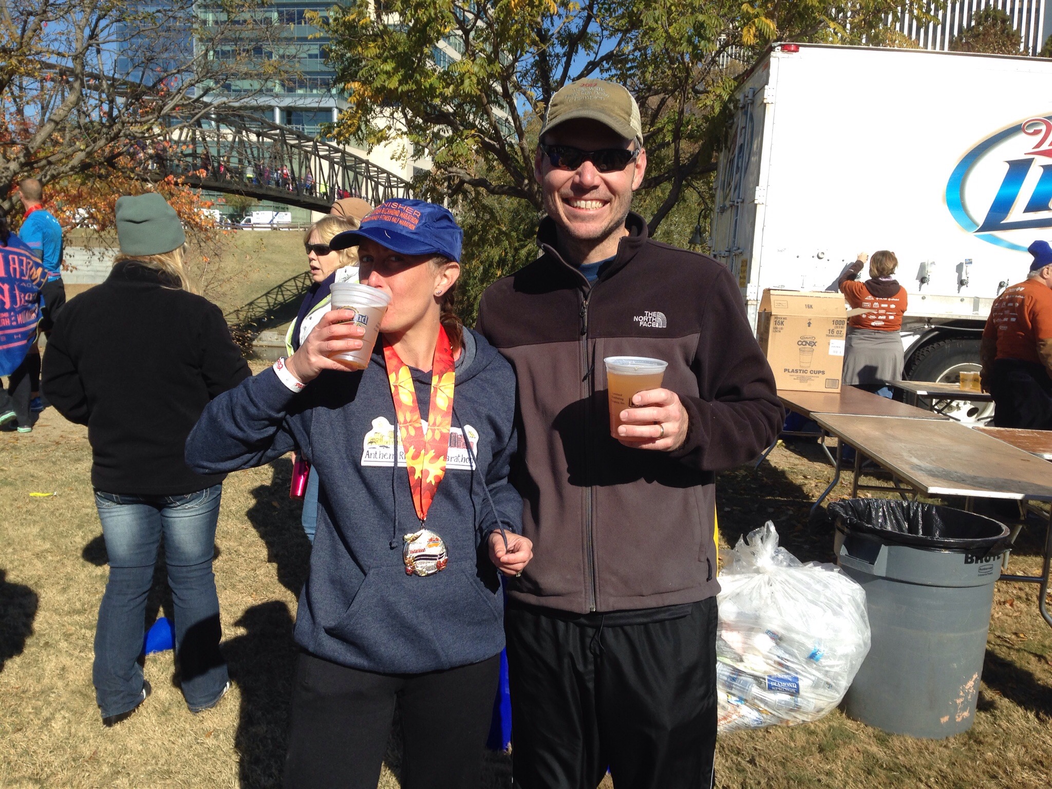 My husband and I woke up pretty early to drive to the start because sadly all the close hotels had been booked. We had to sit in the car for an hour just to beat traffic. I was starting to get nervous just waiting and waiting. This was John’s first half marathon and he was actually getting nervous as well, it was fun to watch. We had a passionate embrace, kissed goodbye and wished each other well.